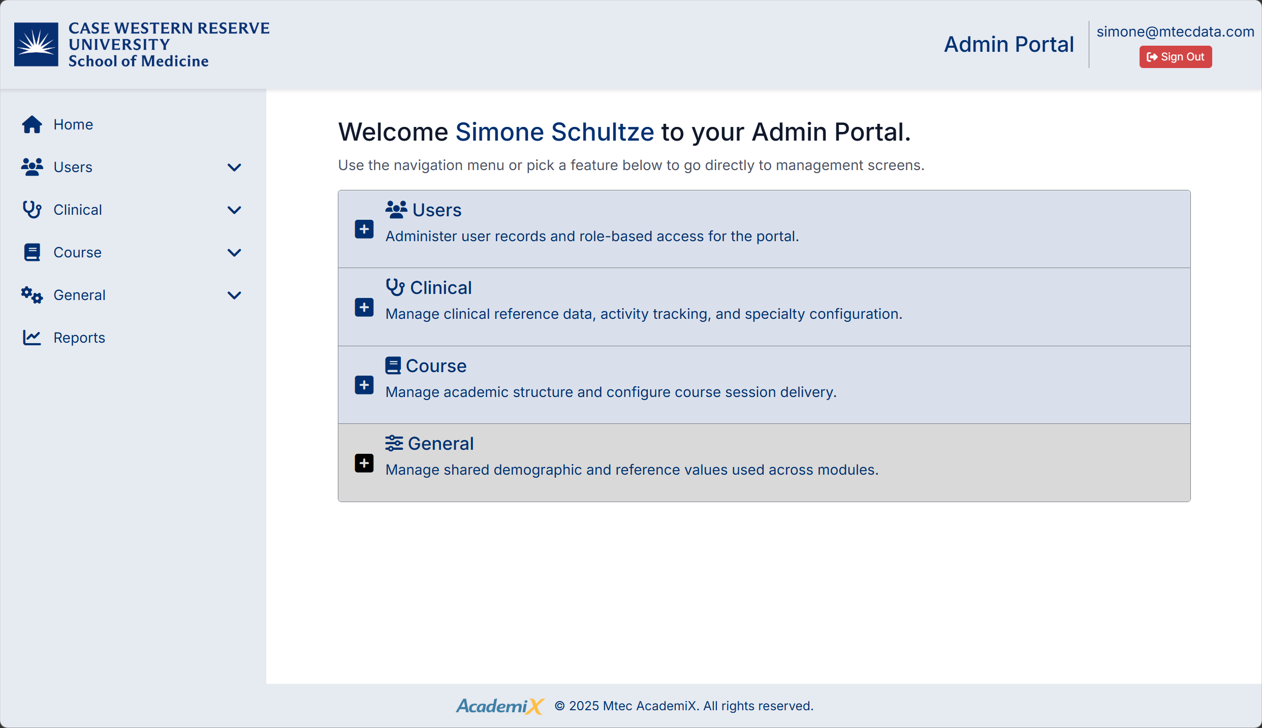The General section provides access to shared system-wide reference data.