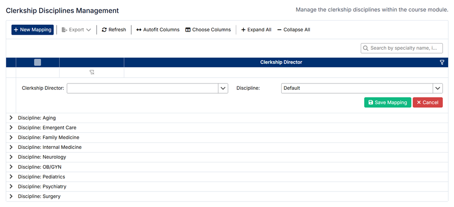 ⚠️ Deleting a mapping removes the association between the clerkship director and the discipline but does not delete either record.